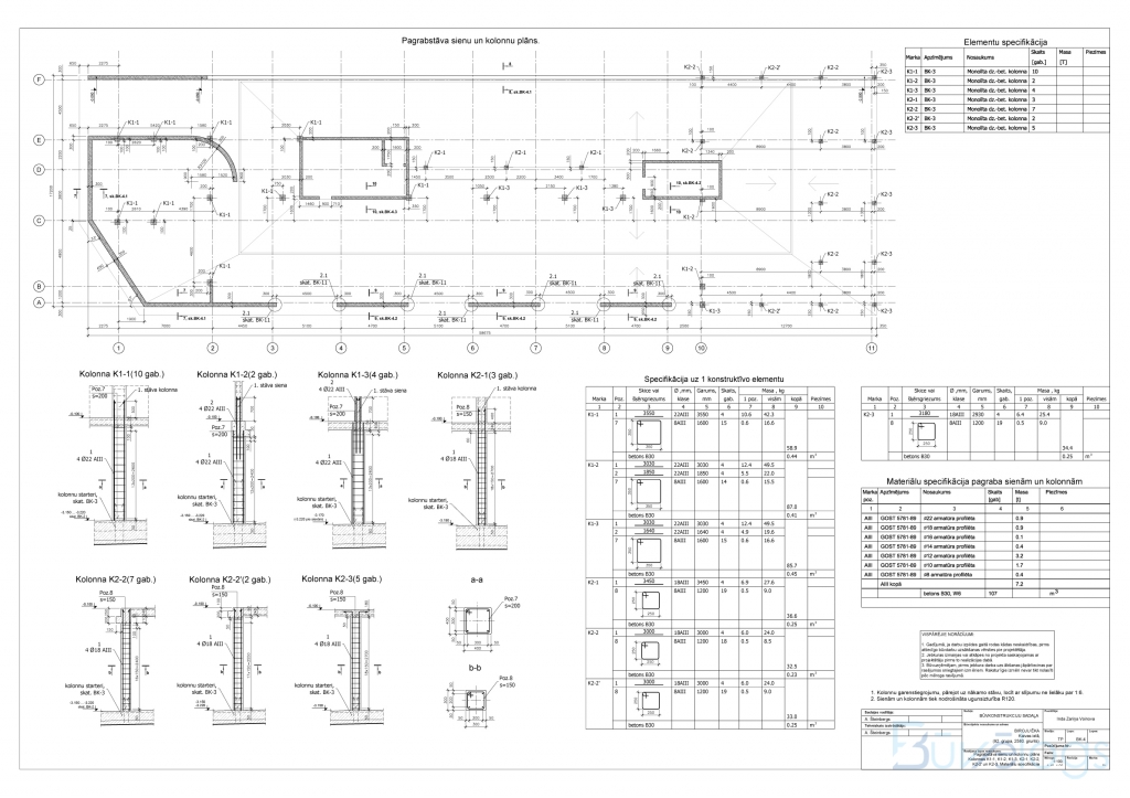 Monolītas dzelzsbetona konstrukcijas ar pašnesošo mūra sienu aizpildījumu.