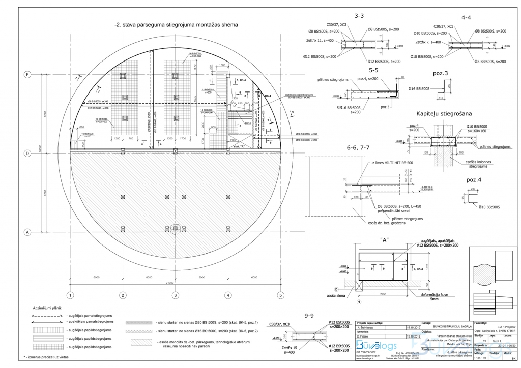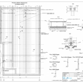 Здание с подвалом, нижняя отметка которого -10,700 м, и на фундаментную плиту воздействует столб воды 10 м высоты. Из 3-х подземных этажей эксплуатируется только верхний, с устройством необходимых дополнительных элементов – колонн и перекрытий. К зданию пристроен спортивный зал с подвалом по всей площади здания.